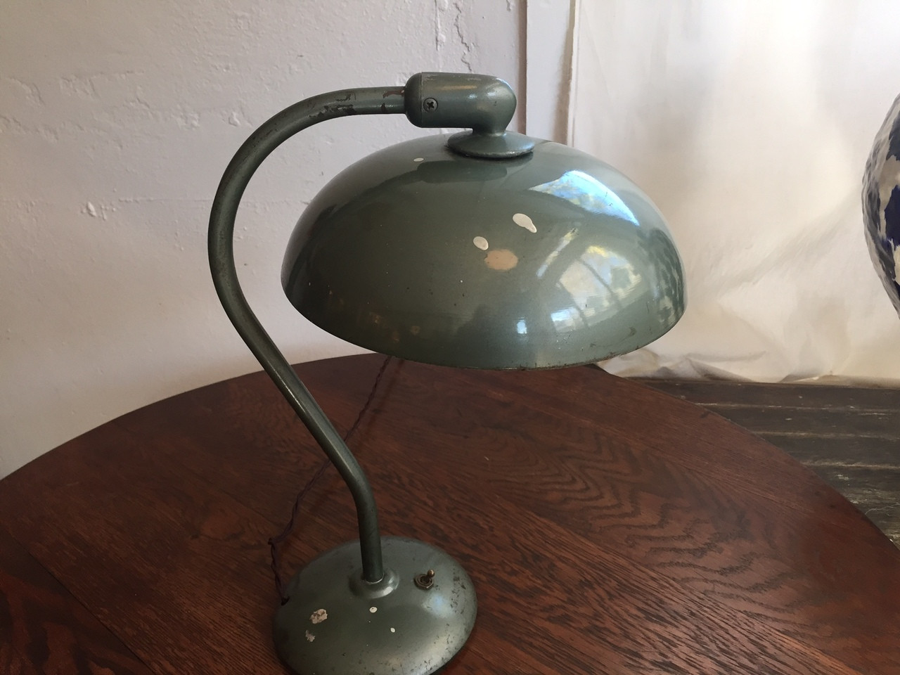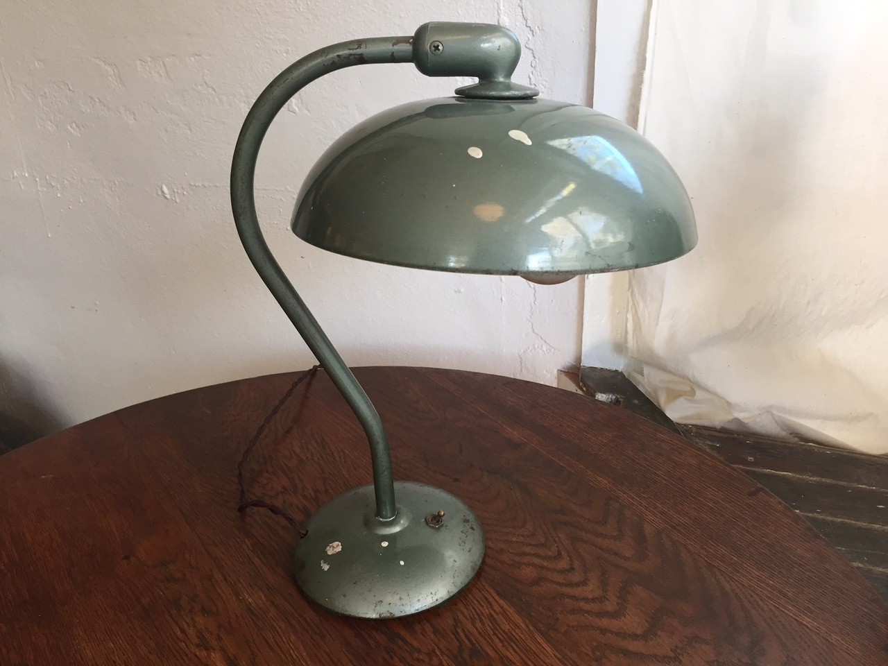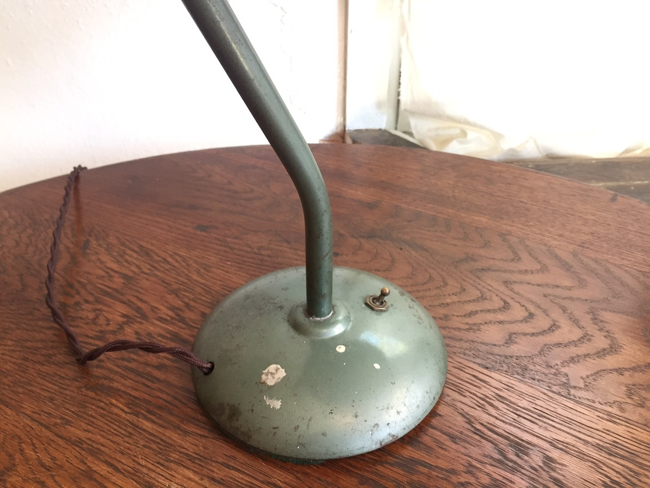 (update: sold) Antique Industrial Green Dazor Task Lamp. Circa 1940s. Rewired with retro-style cloth brown cord.