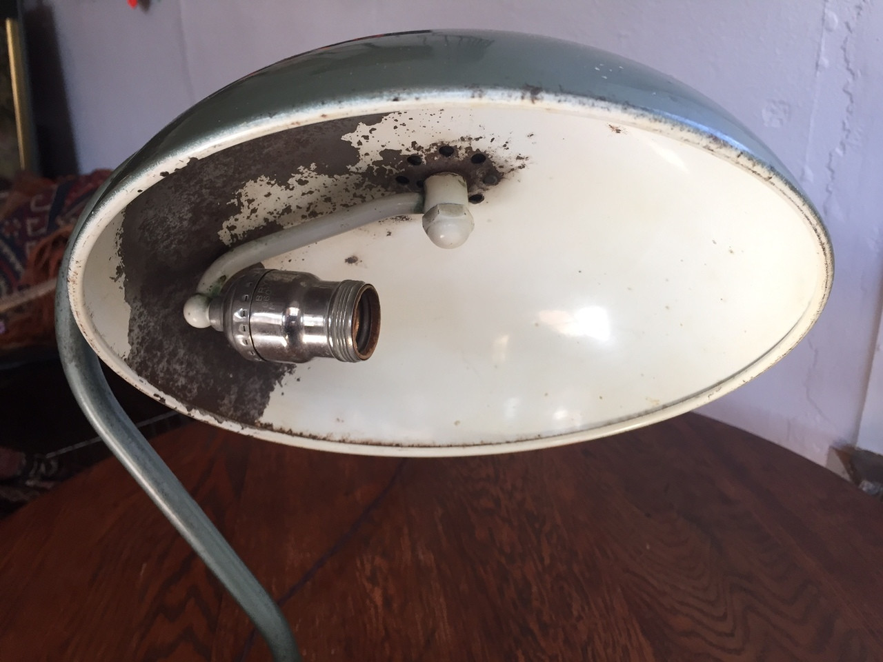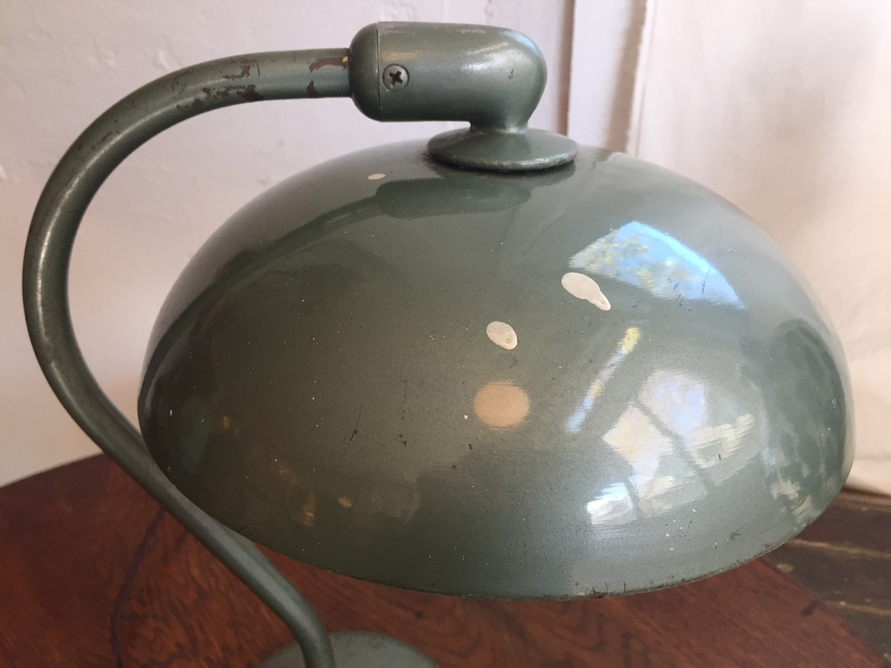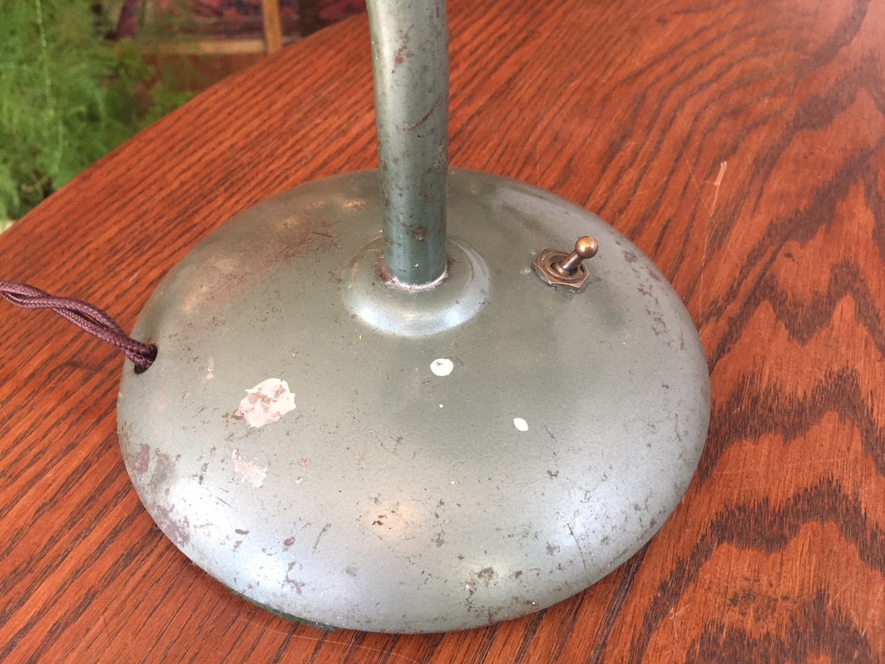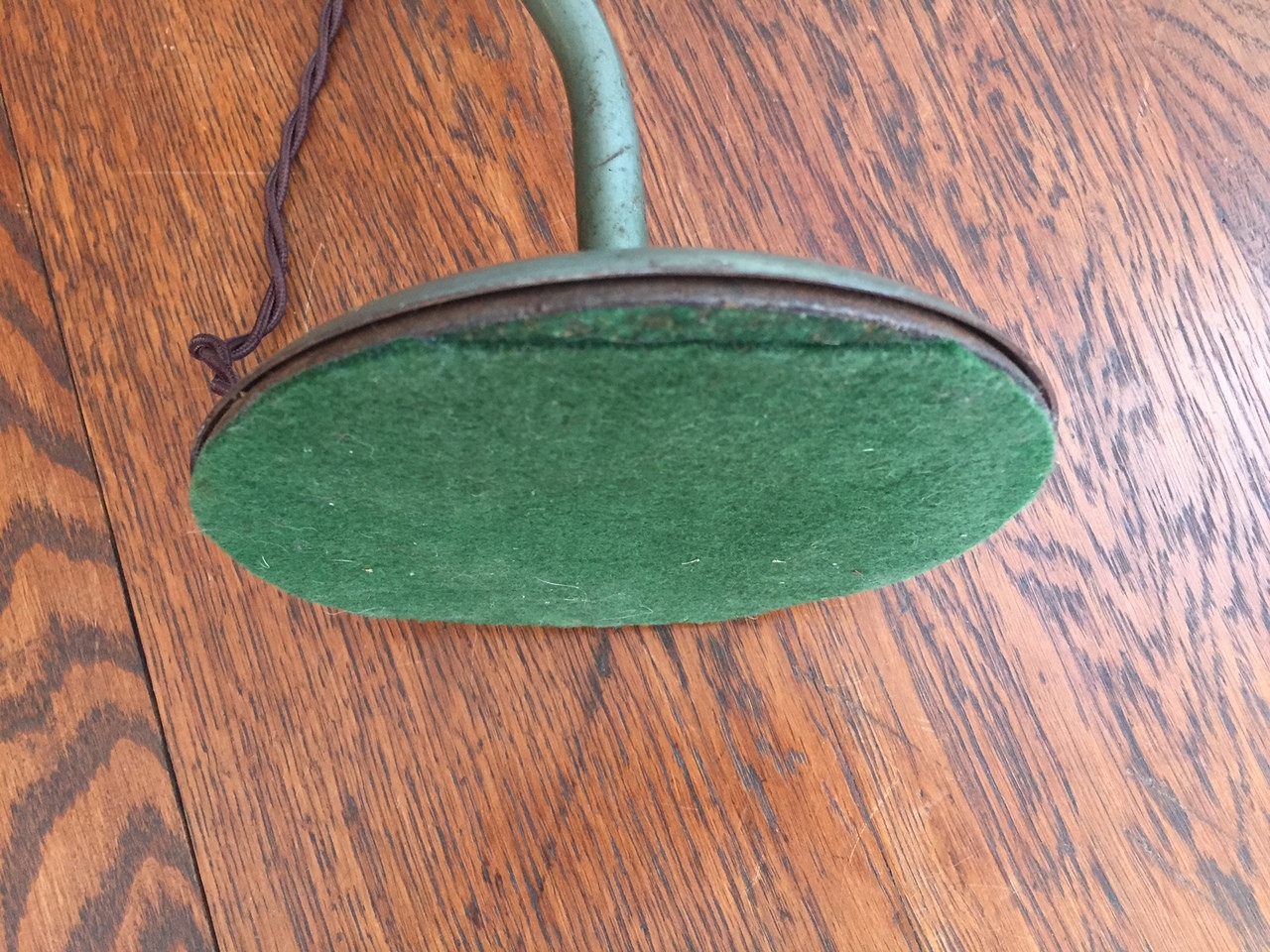 (update: sold) Antique Industrial Green Dazor Task Lamp. Circa 1940s. Rewired with retro-style cloth brown cord.
